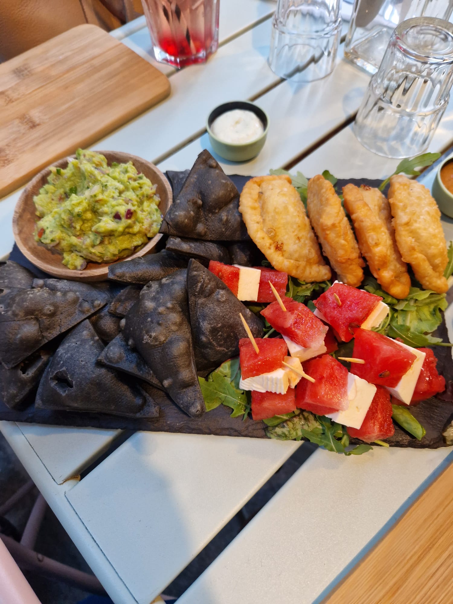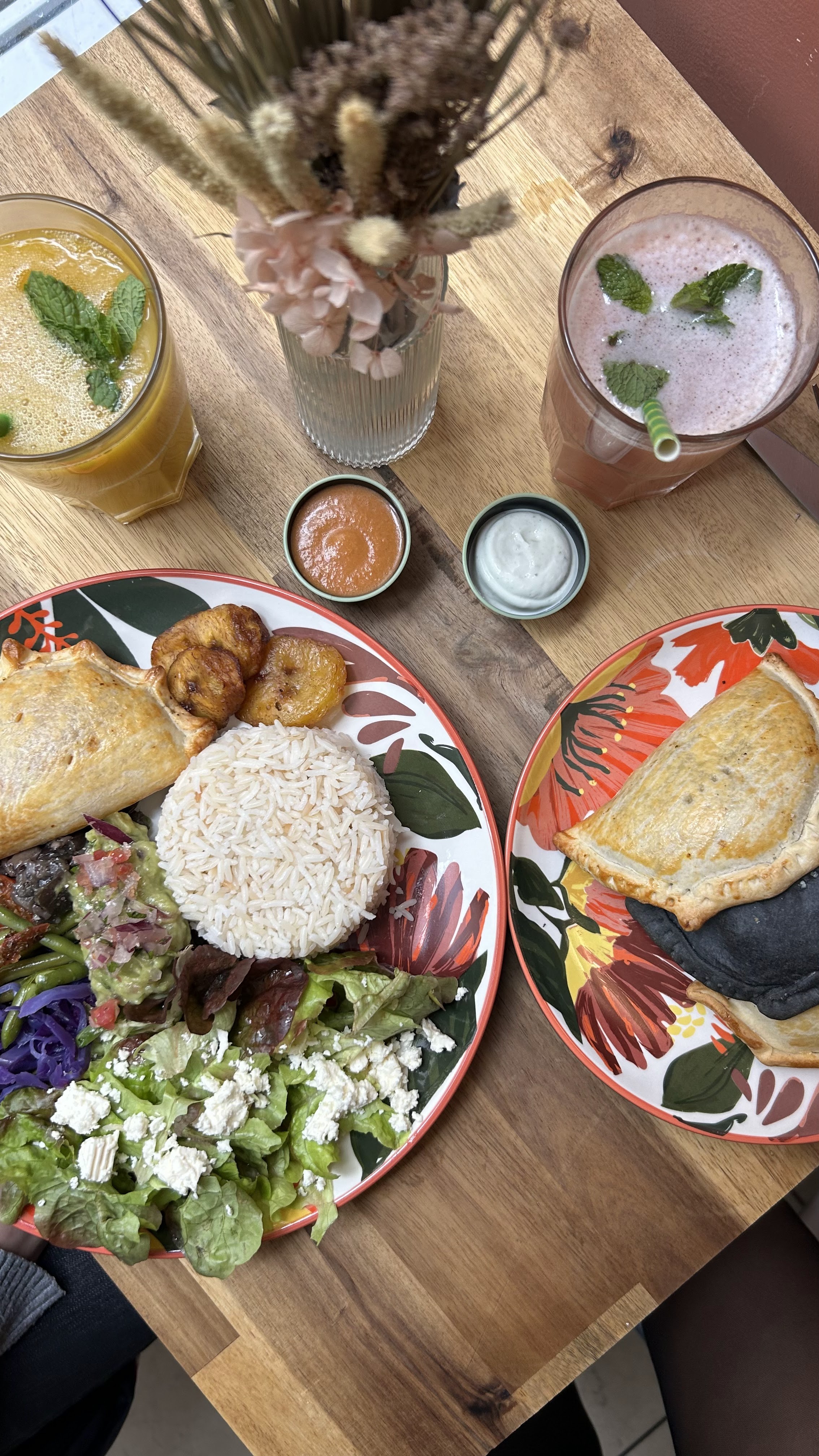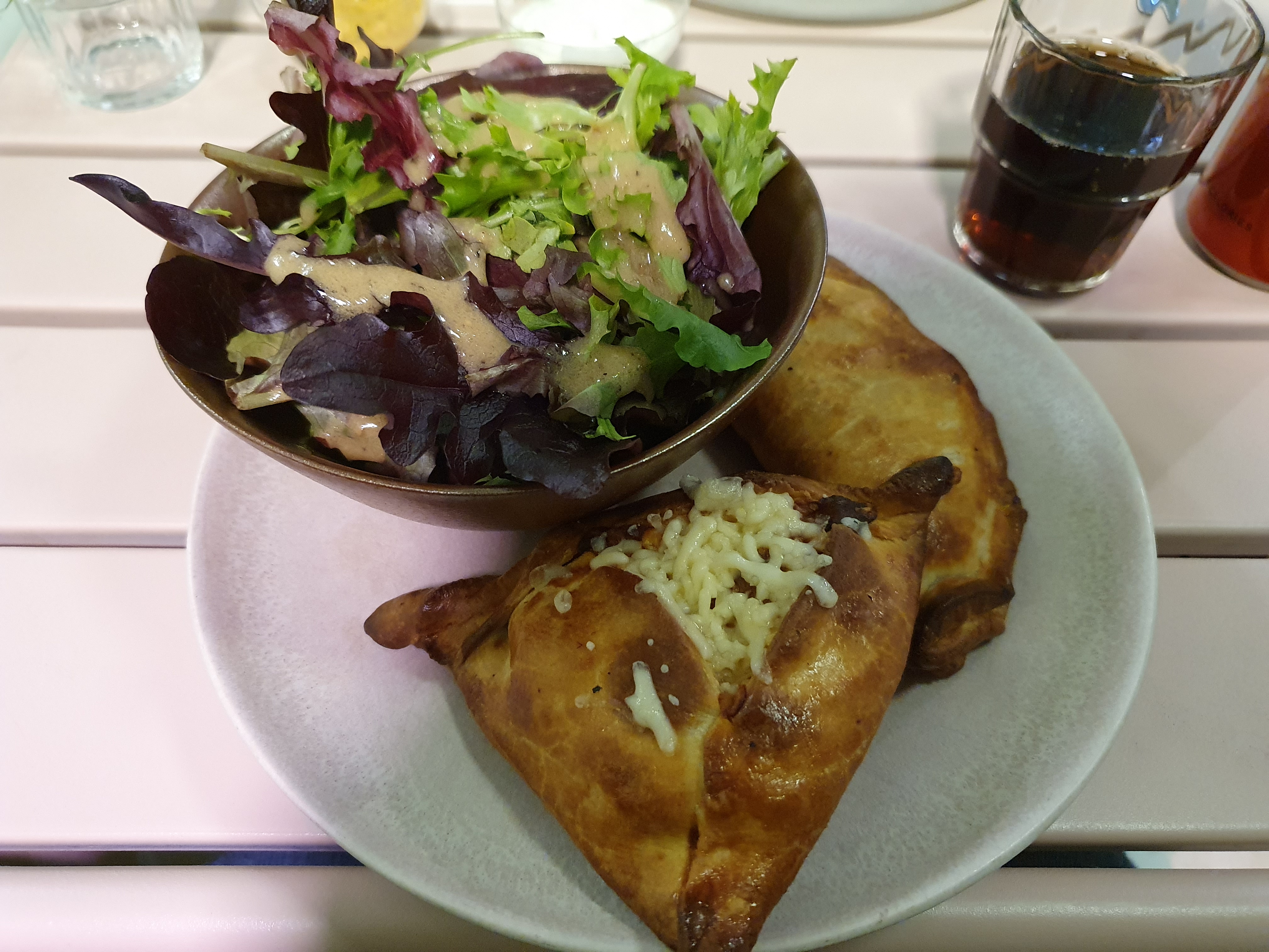 Bon empanadas, ainsi que la salade du jour et le jus maison. (2 choix vegan). Je n'ai pas mis 5 étoiles car j'aurais peut-être diminuer les portions de fromage au profit des autres ingrédients dans les empenadas, et parce que c'est cher. Il faut mieux y aller à 3-4 pour prendre un grand plateau.